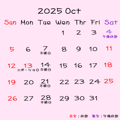 10/11(土),10/18(土),10/25(土)休診