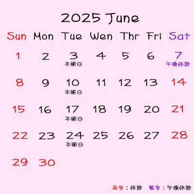 | 月 | 婦人科:8:45~11:15 院長 婦人科:14:00~15:30 院長 産科:9:00~11:30 予防接種:12:00 |